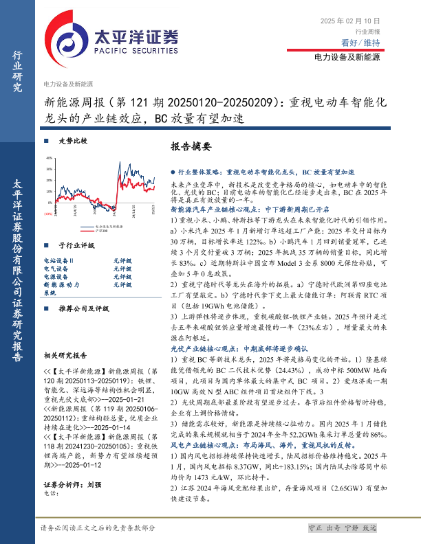 【太平洋证券】【20250210】20250210-太平洋-新能源行业周报(第121期):重视电动车智能化龙头的产业链效应,BC放量有望加速-28页