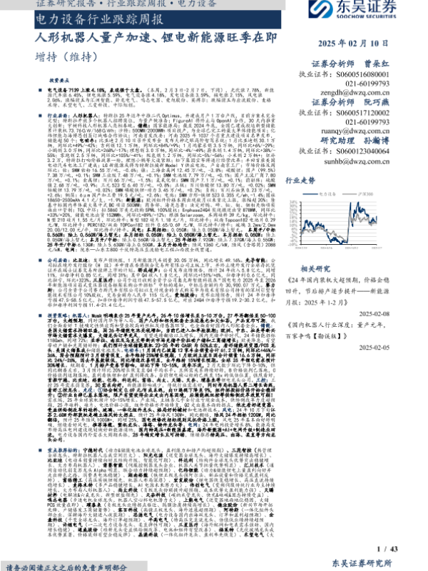 【东吴证券】【20250210】电力设备行业跟踪周报:人形机器人量产加速、锂电新能源旺季在即-43页