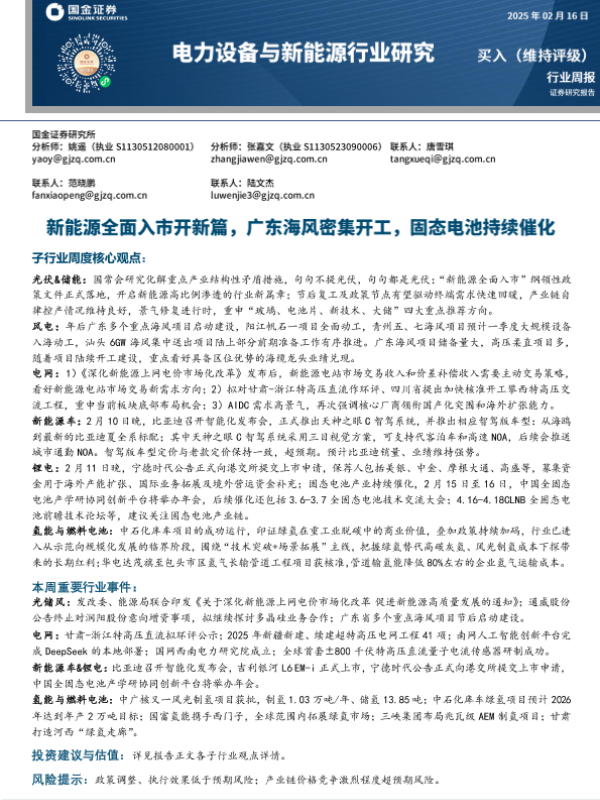 【国金证券】【20250216】电力设备与新能源行业研究:新能源全面入市开新篇,广东海风密集开工,固态电池持续催化-17页