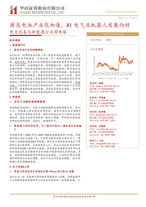 【华西证券】【20250216】电力设备与新能源行业周观察:固态电池产业化加速,AI电气及机器人发展向好-24页