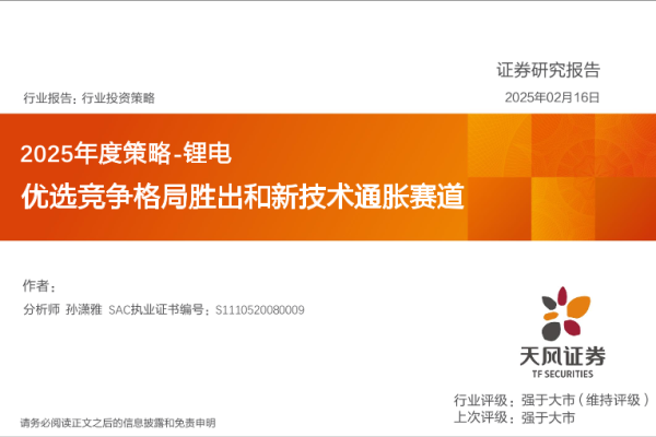 【天风证券】【20250216】2025年度策略-锂电:优选竞争格局胜出和新技术通胀赛道-49页
