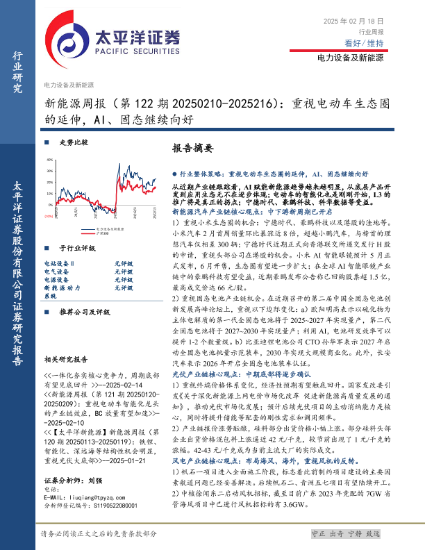 【太平洋证券】【20250218】20250218-太平洋-新能源周报(第122期):重视电动车生态圈的延伸,AI、固态继续向好-26页