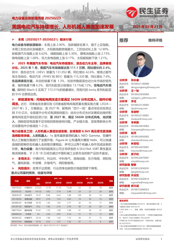 【民生证券】【20250223】电力设备及新能源周报:美国电动汽车持续增长,人形机器人赛道加速发展-24页