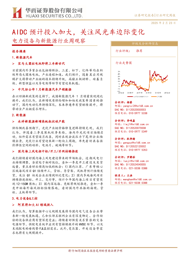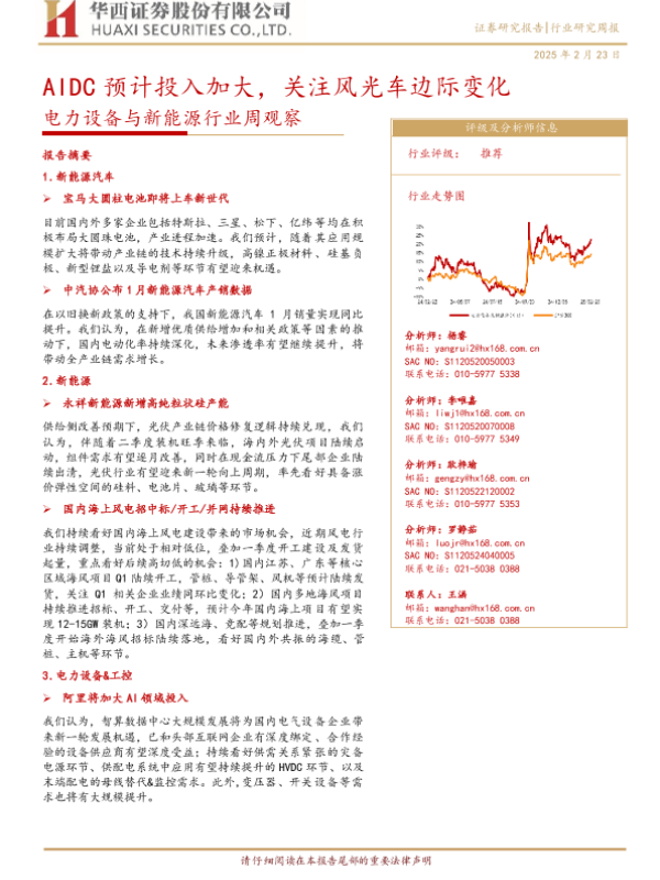 【华西证券】【20250223】电力设备与新能源行业周观察:AIDC预计投入加大,关注风光车边际变化-26页