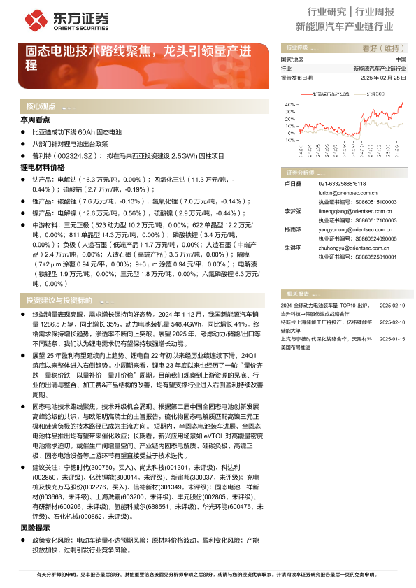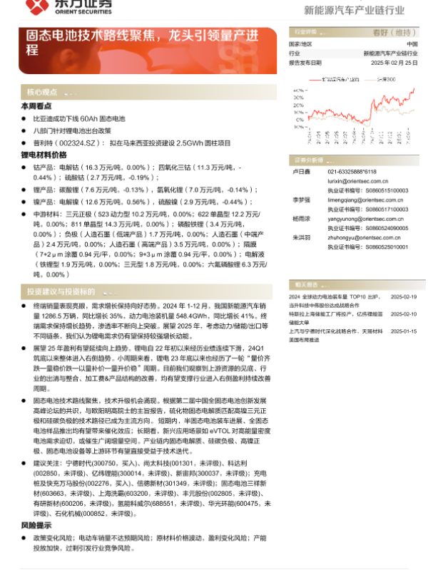 【东方证券】【20250225】新能源汽车产业链行业周报:固态电池技术路线聚焦,龙头引领量产进程-15页