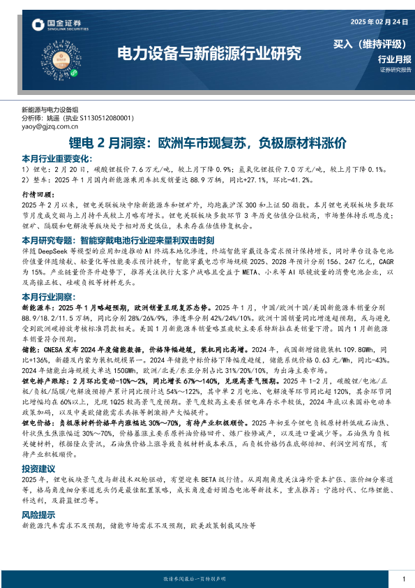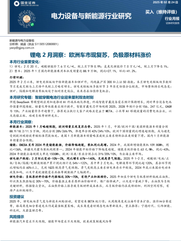 【国金证券】【20250224】锂电2月洞察:欧洲车市现复苏,负极原材料涨价-13页