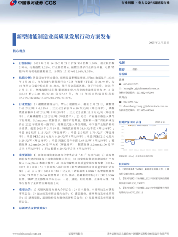 【银河证券】【20250223】电力设备与新能源行业行业周报:新型储能制造业高质量发展行动方案发布-20页