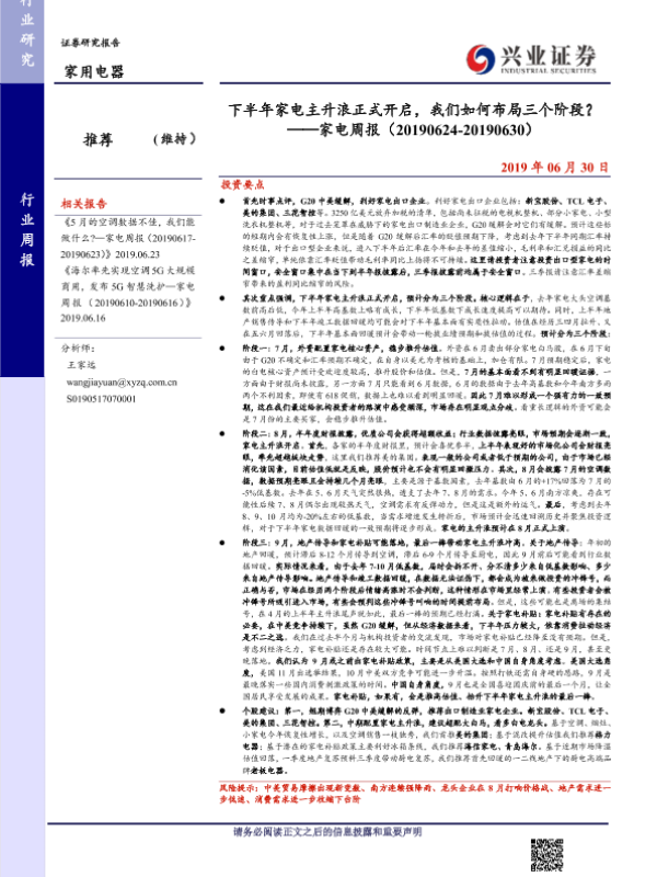 【兴业证券】【20190630】下半年家电主升浪正式开启,我们如何布局三个阶段?——家电周报(20190624-20190630)-11页