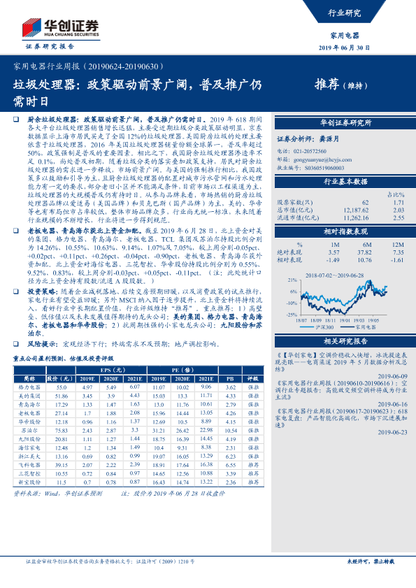 【华创证券】【20190630】家用电器行业周报:垃圾处理器:政策驱动前景广阔,普及推广仍需时日-16页