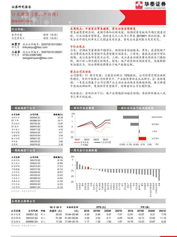 【华泰证券】【20190701】20190701-华泰证券-家用电器行业周报(第二十六周)-12页