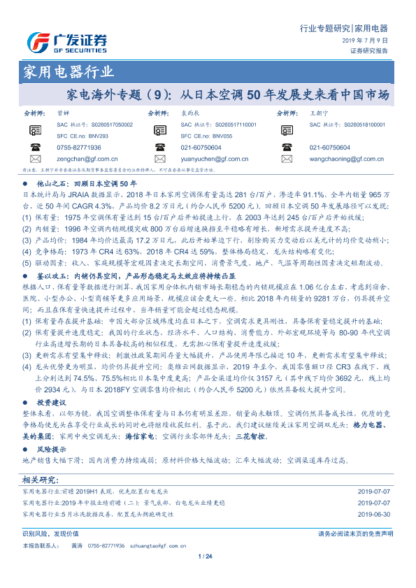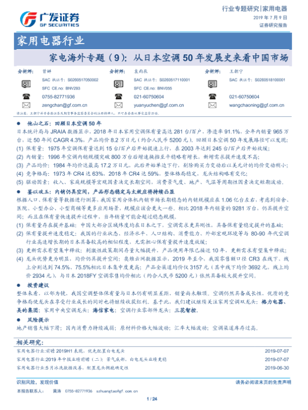 【广发证券】【20190709】家电海外专题(9):从日本空调50年发展史来看中国市场-24页