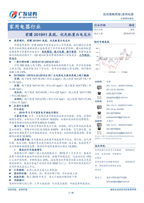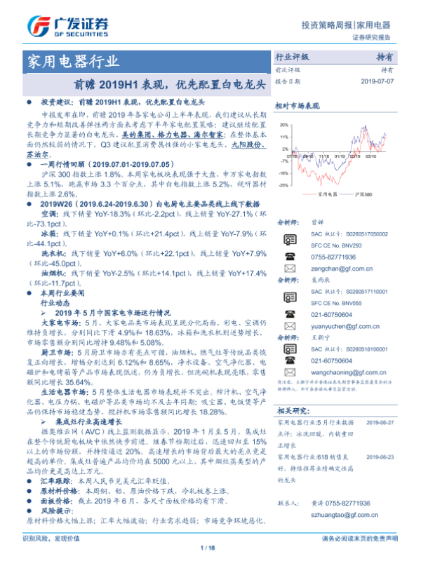 【广发证券】【20190707】家用电器行业:前瞻2019H1表现,优先配置白电龙头-18页