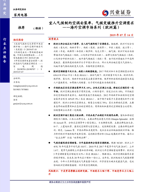 【兴业证券】【20190714】宜人气候制约空调安装率,气候变暖推升空调需求 ——海外空调市场系列(欧洲篇)-13页