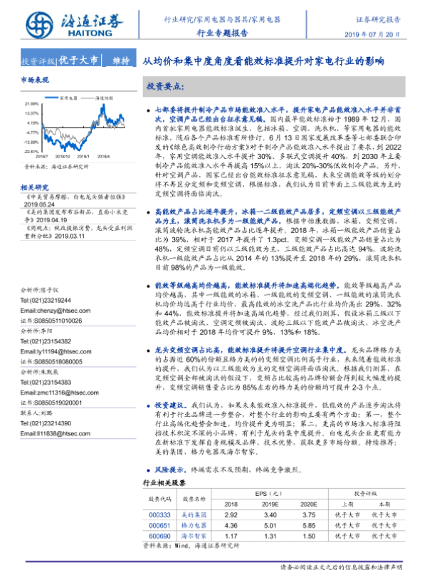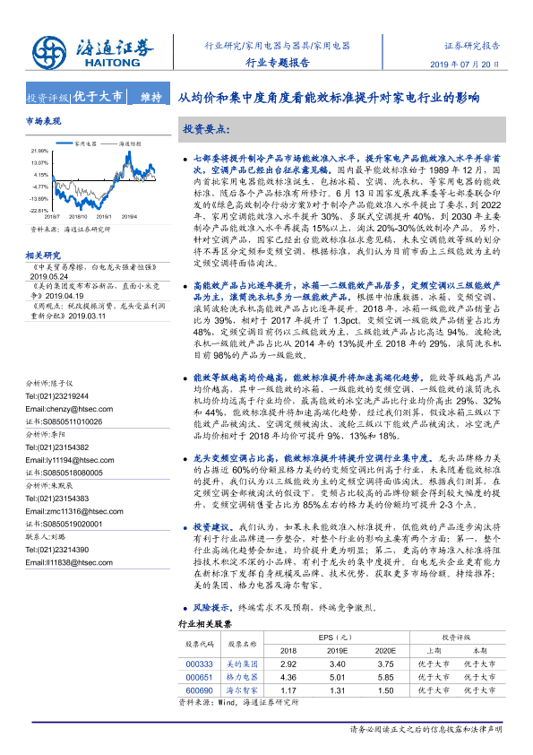 【海通证券】【20190720】家用电器行业专题报告:从均价和集中度角度看能效标准提升对家电行业的影响-16页