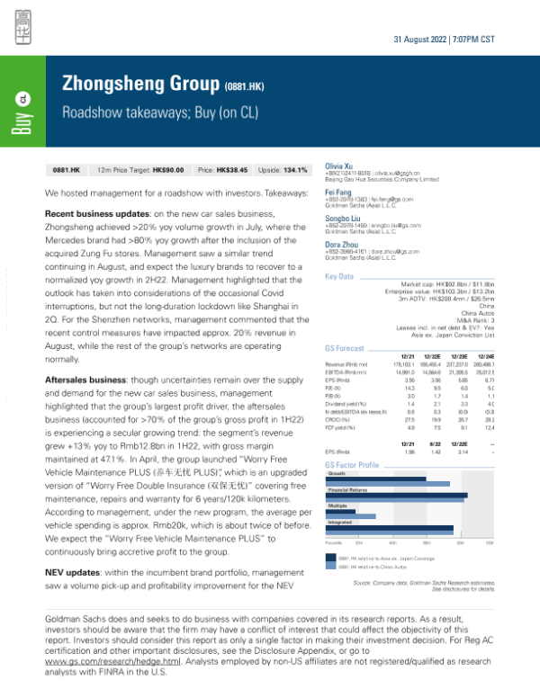 【Goldman Sachs】【20220831】Zhongsheng Group (0881.HK)_ Roadshow takeaways; Buy (on CL)-7页