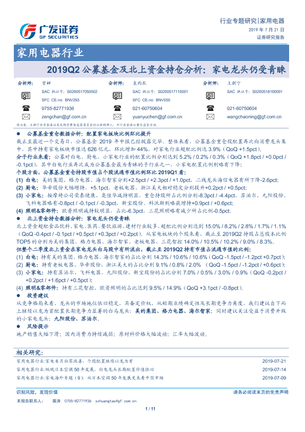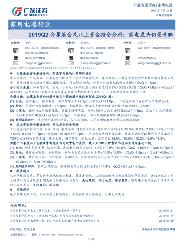 【广发证券】【20190721】2019Q2公募基金及北上资金持仓分析:家电龙头仍受青睐-11页