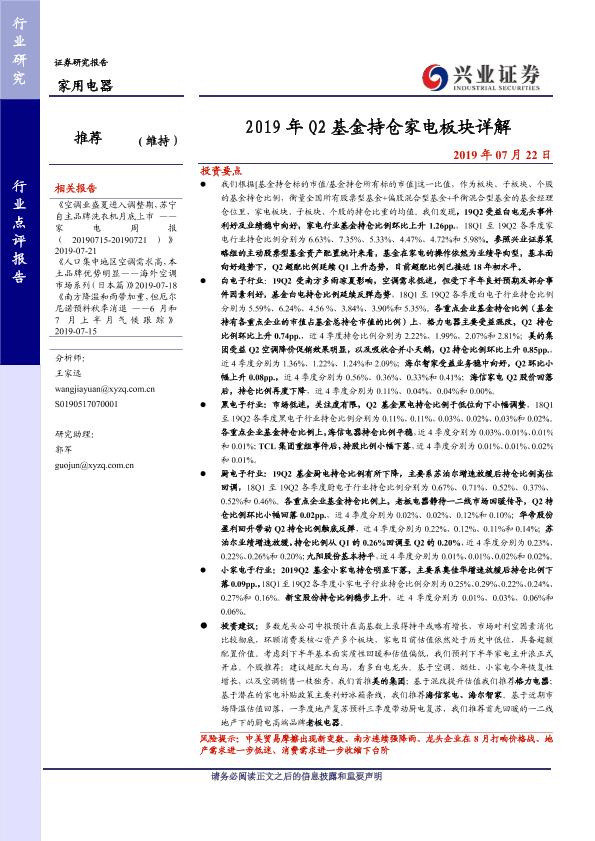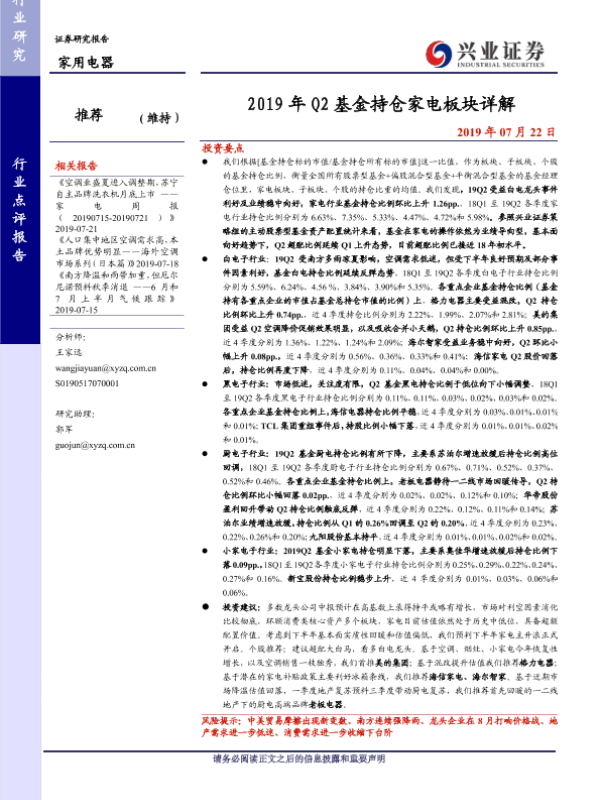 【兴业证券】【20190722】2019年Q2基金持仓家电板块详解-7页