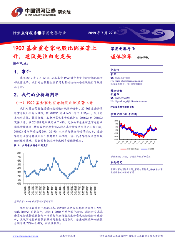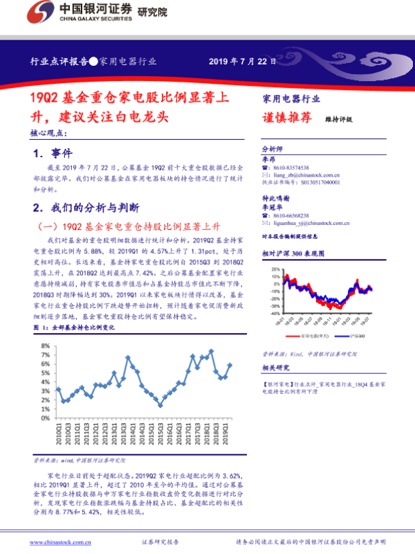 【银河证券】【20190722】20190722-中国银河-家用电器行业点评报告:19Q2基金重仓家电股比例显著上升,建议关注白电龙头-7页