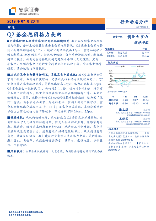 【安信证券】【20190723】20190723-安信证券-家电行业动态分析:Q2基金抱团格力美的-8页