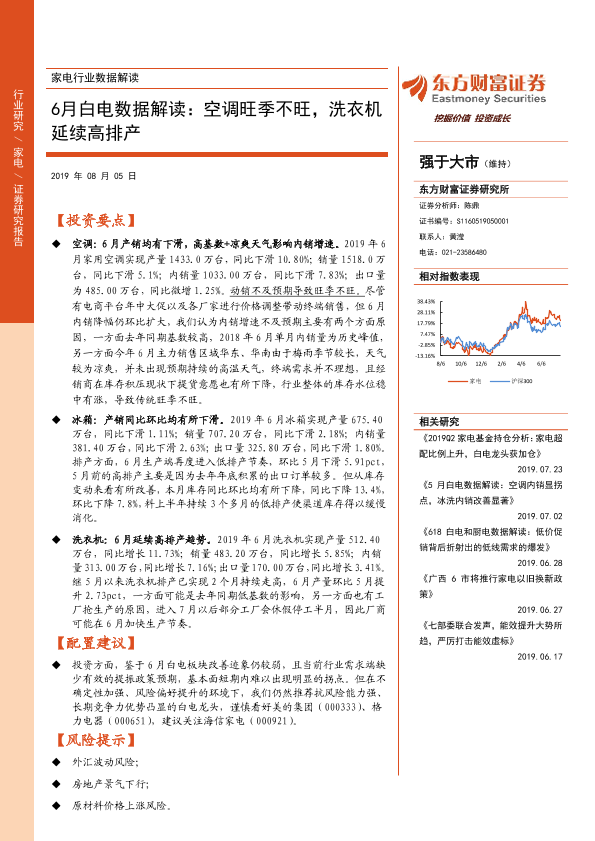 【东方财富证券】【20190805】20190805-东方财富证券-家电行业数据解读:6月白电数据解读:空调旺季不旺,洗衣机延续高排产-10页
