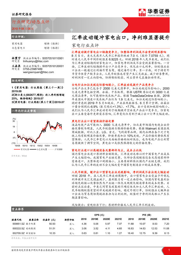 【华泰证券】【20190806】家电行业点评:汇率波动缓冲家电出口,净利难显著提升-3页