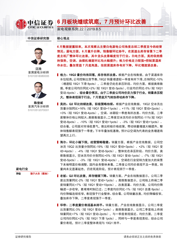 【中信证券】【20190805】6月板块继续筑底,7月预计环比改善-16页
