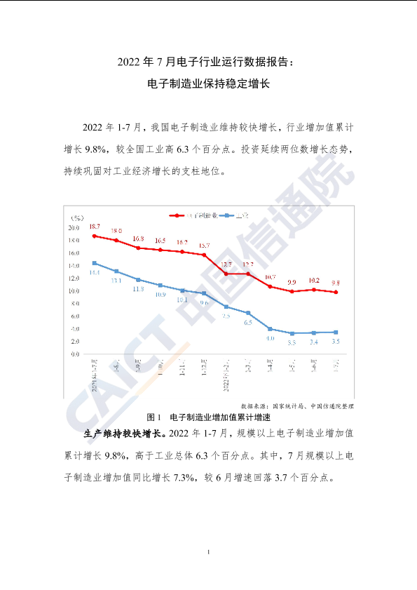 【中国信息通信研究院】【202207】2022年7月电子行业运行数据报告:电子制造业保持稳定增长-4页