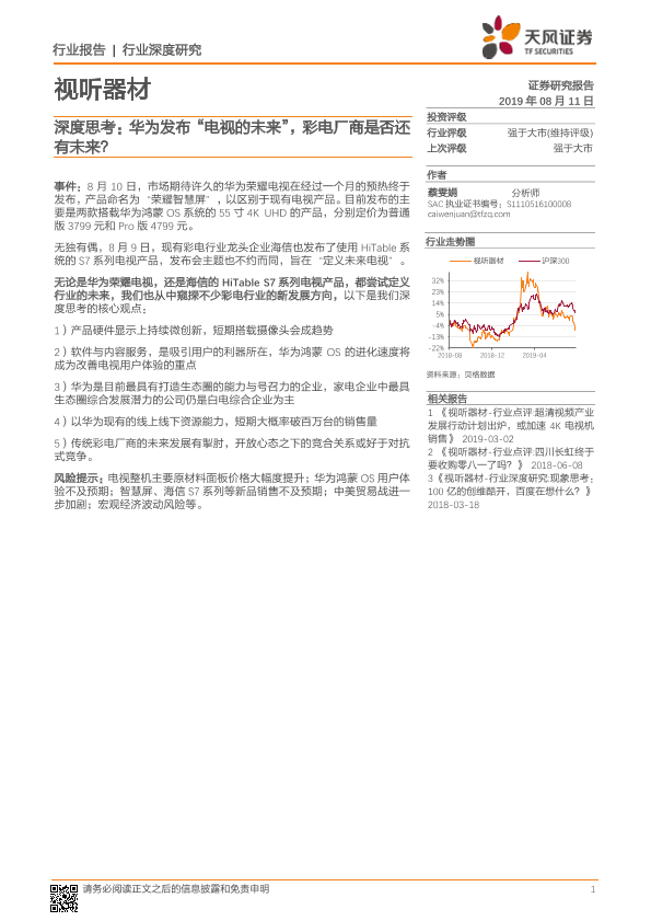 【天风证券】【20190811】视听器材行业深度研究:深度思考:华为发布“电视的未来”,彩电厂商是否还有未来?-12页