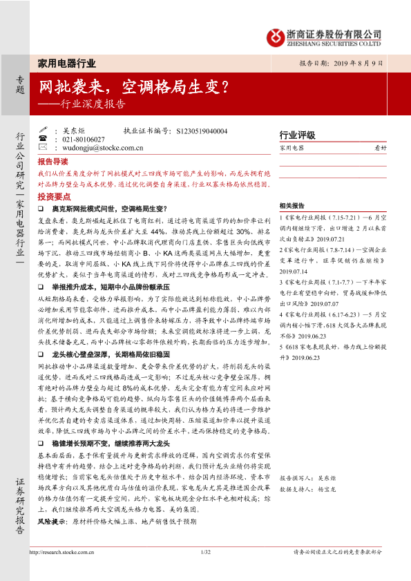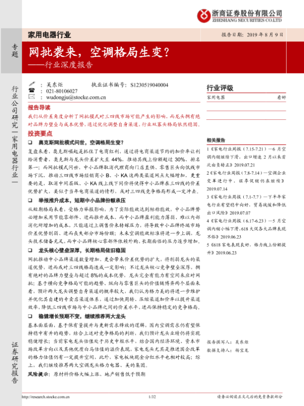 【浙商证券】【20190809】家用电器行业深度报告:网批袭来,空调格局生变?-32页
