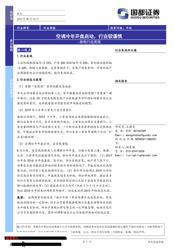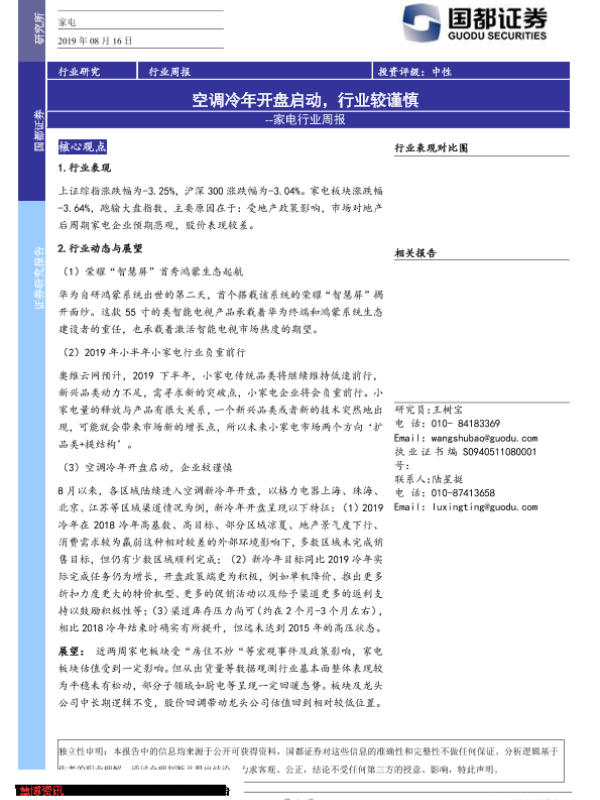 【国都证券】【20190816】20190816-国都证券-家电行业周报:空调冷年开盘启动,行业较谨慎-3页
