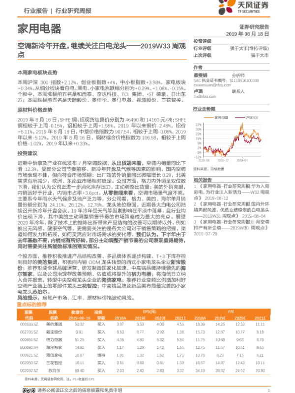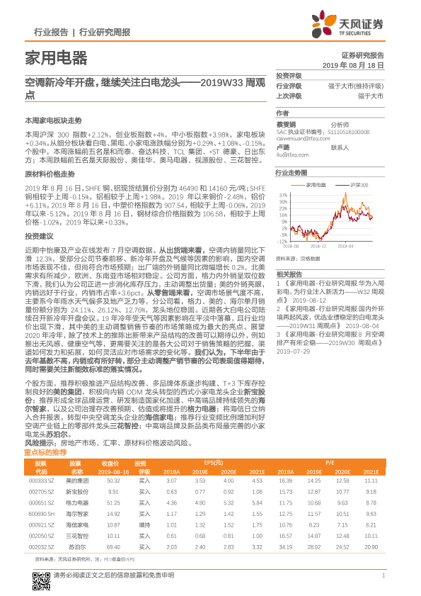 【天风证券】【20190818】家用电器2019W33周观点:空调新冷年开盘,继续关注白电龙头-11页