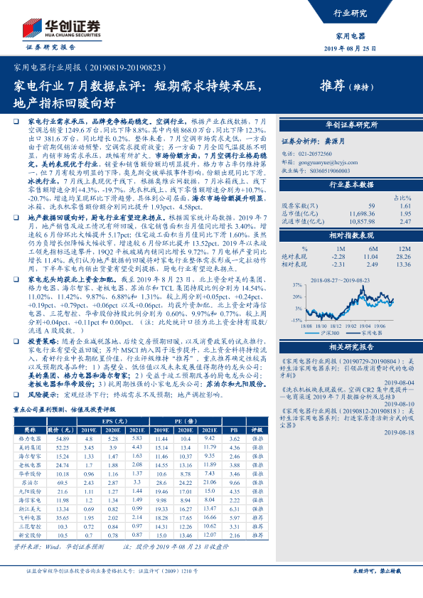【华创证券】【20190825】家电行业7月数据点评:短期需求持续承压,地产指标回暖向好-15页