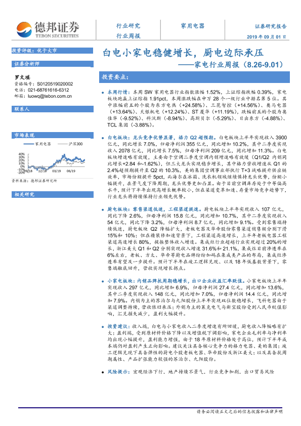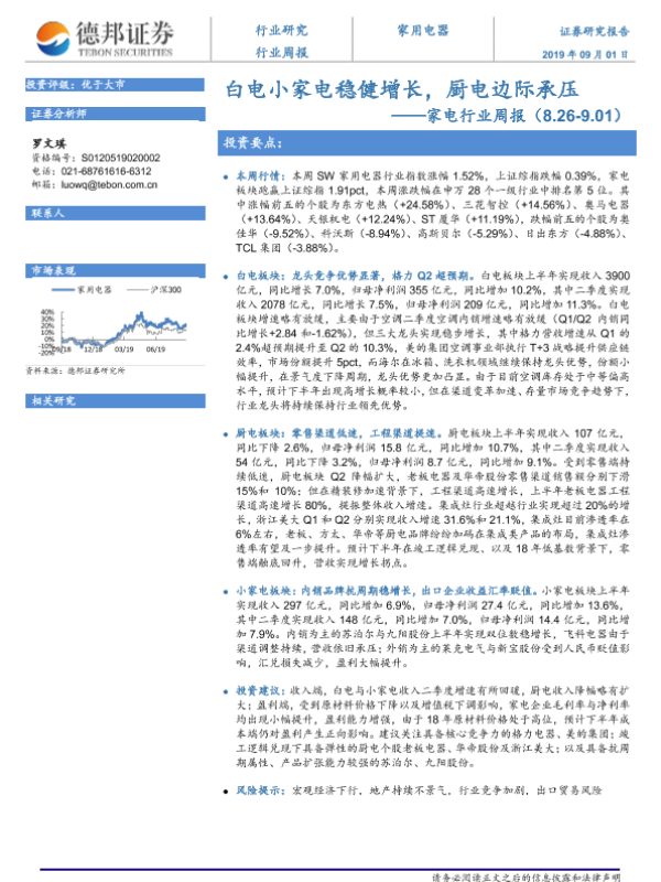 【德邦证券】【20190901】20190901-德邦证券-家电行业周报:白电小家电稳健增长,厨电边际承压-8页