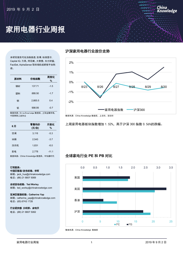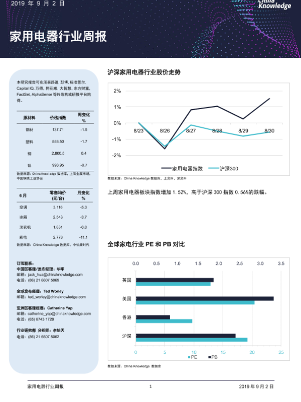 【China Knowledge】【20190902】家用电器行业周报-14页