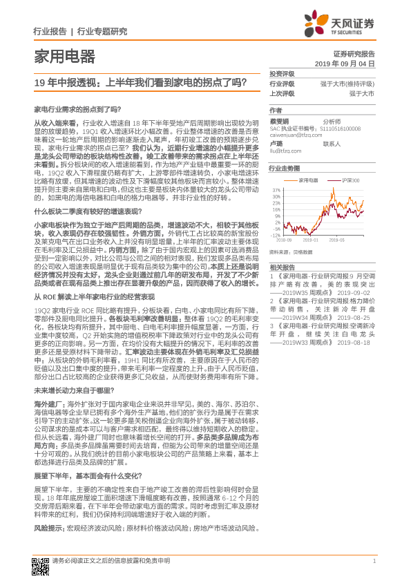 【天风证券】【20190904】19年中报透视:上半年我们看到家电的拐点了吗?-16页