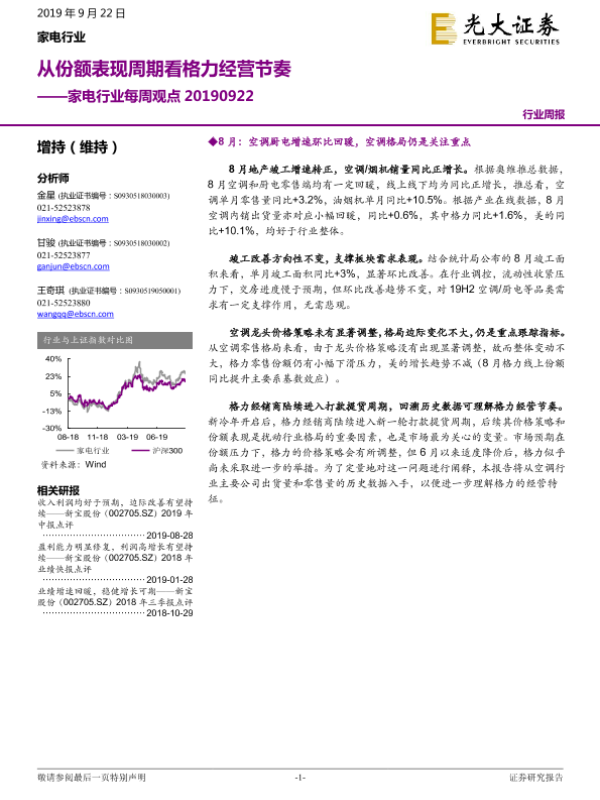 【光大证券】【20190922】家电行业每周观点:从份额表现周期看格力经营节奏-9页