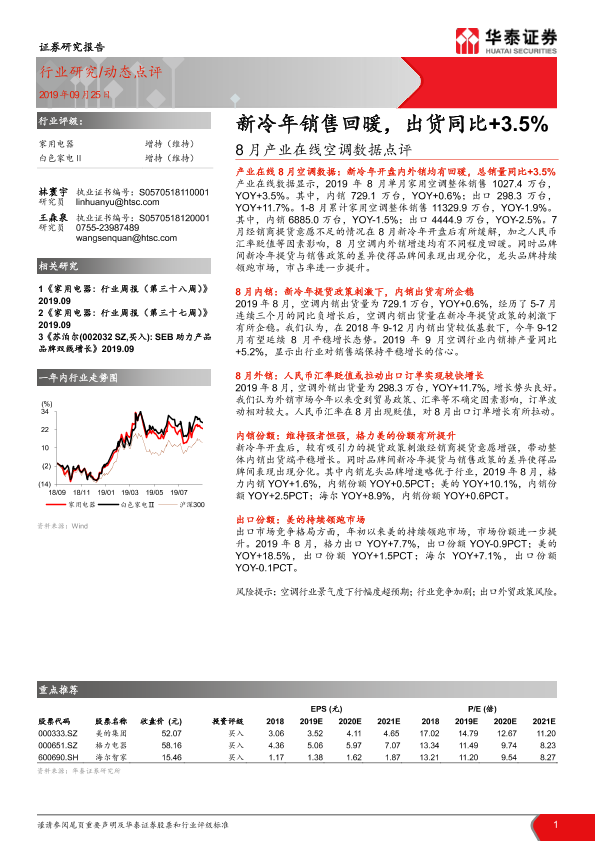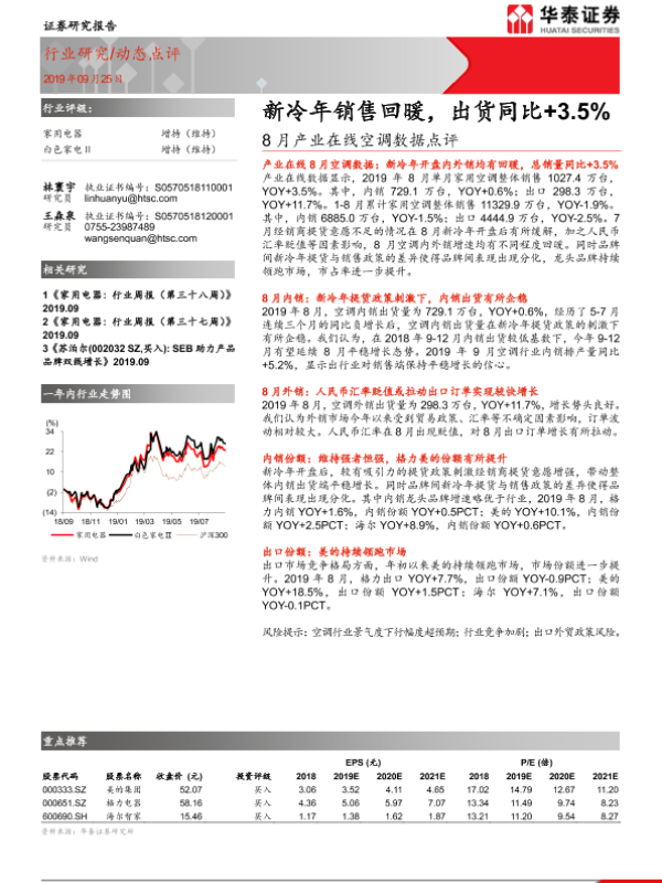 【华泰证券】【20190925】20190925-华泰证券-8月产业在线空调数据点评:新冷年销售回暖,出货同比+3.5%-6页