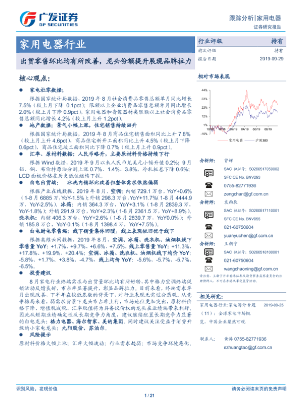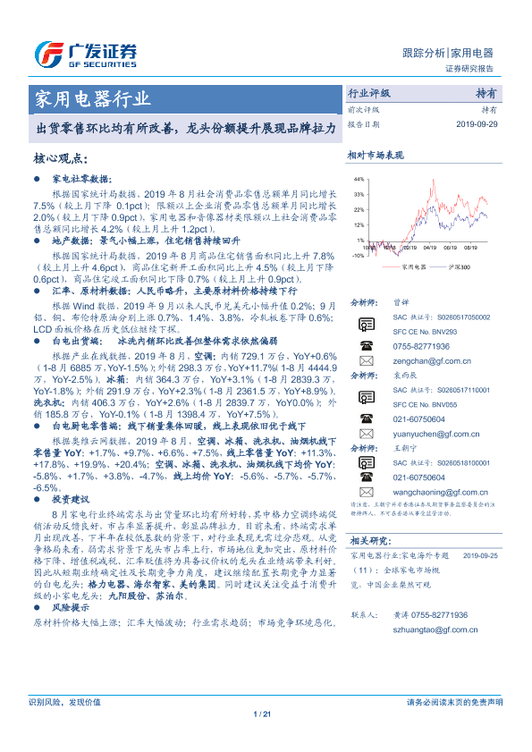 【广发证券】【20190929】家用电器行业:出货零售环比均有所改善,龙头份额提升展现品牌拉力-21页