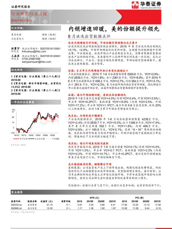 【华泰证券】【20190930】20190930-华泰证券-8月冰洗出货数据点评:内销增速回暖,美的份额提升领先-10页