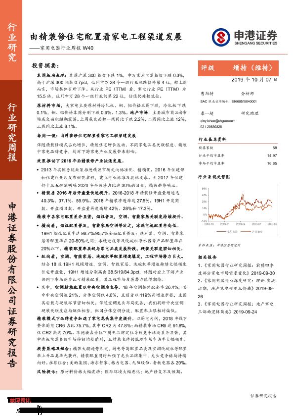 【申港证券】【20191007】家用电器行业周报W40:由精装修住宅配置看家电工程渠道发展-18页