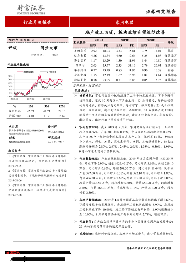【财信证券】【20191009】家用电器行业月度报告:地产竣工回暖,板块业绩有望边际改善-11页