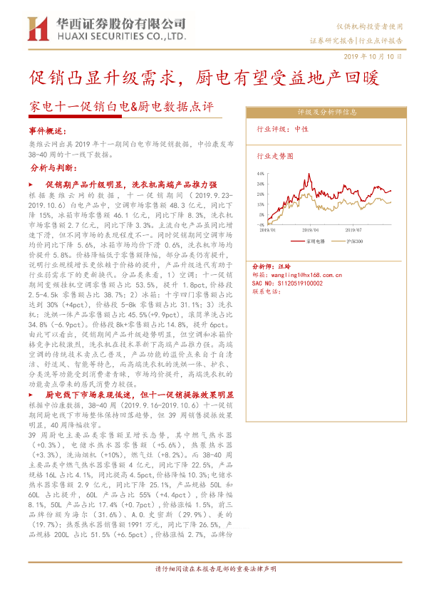【华西证券】【20191010】家电十一促销白电&厨电数据点评:促销凸显升级需求,厨电有望受益地产回暖-4页