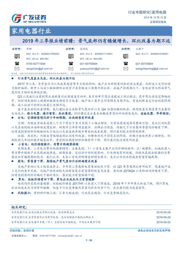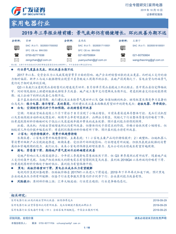 【广发证券】【20191010】2019年三季报业绩前瞻:景气底部仍有稳健增长,环比改善为期不远-16页