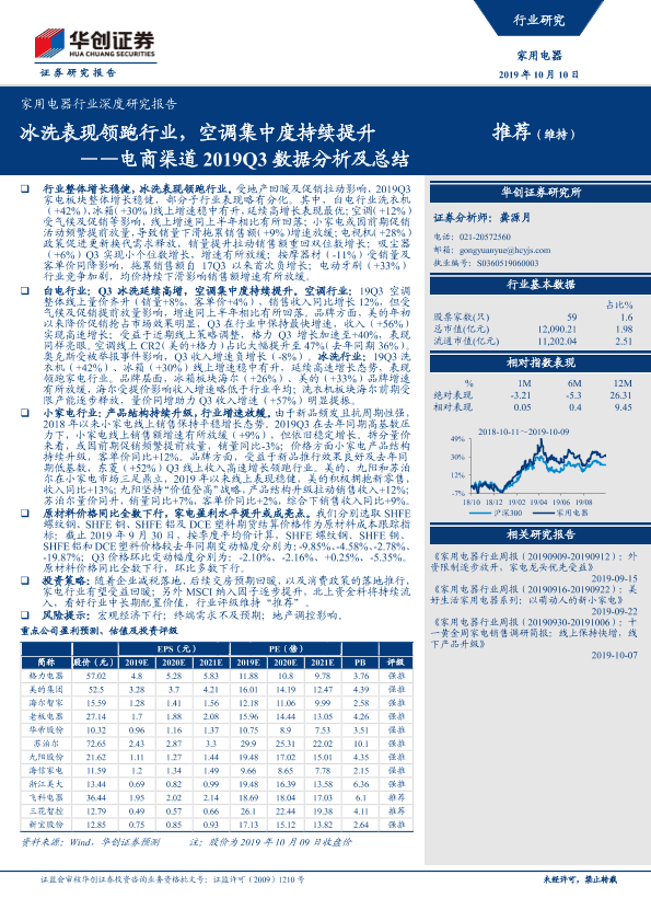 【华创证券】【20191010】家用电器行业深度研究报告:冰洗表现领跑行业,空调集中度持续提升-电商渠道2019Q3数据分析及总结-23页