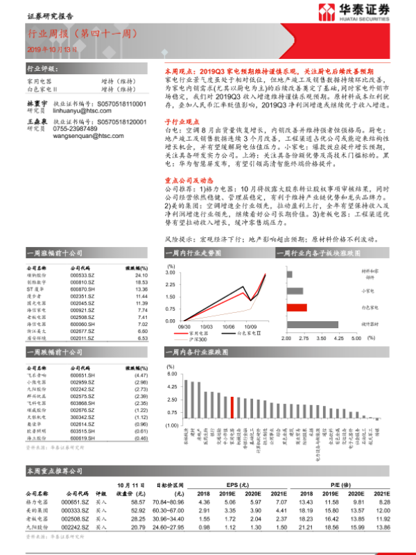 【华泰证券】【20191013】家用电器行业周报(第四十一周)-14页