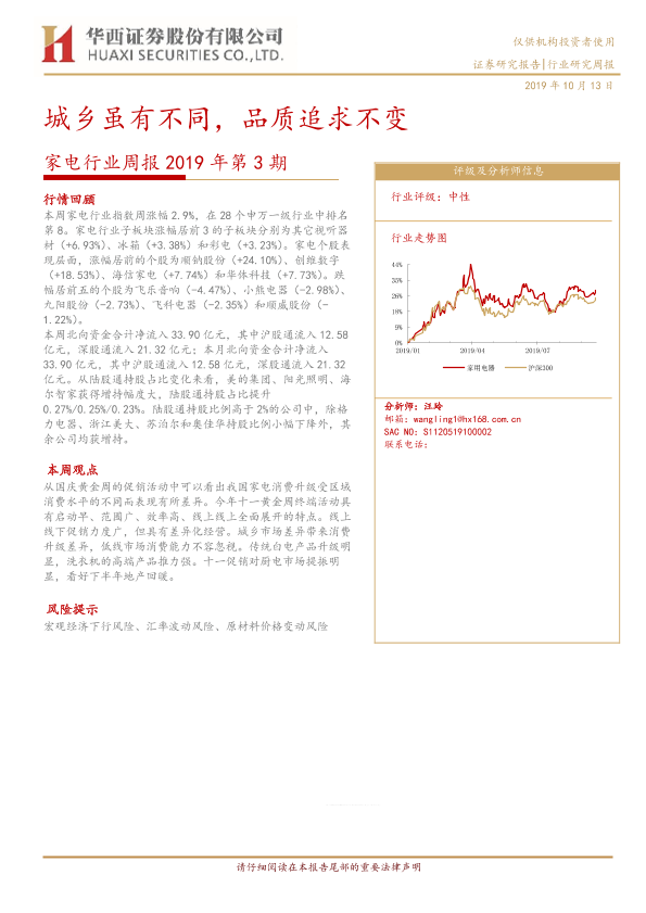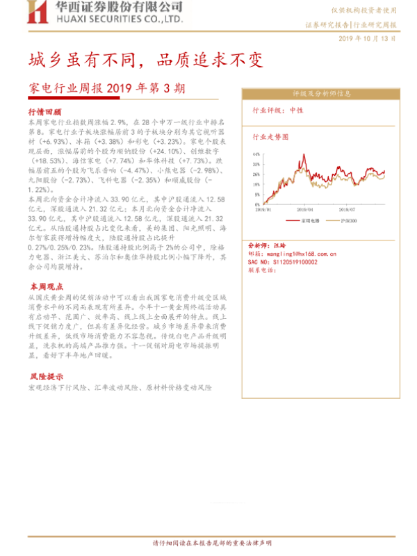 【华西证券】【20191013】家电行业周报2019年第3期:城乡虽有不同,品质追求不变-18页