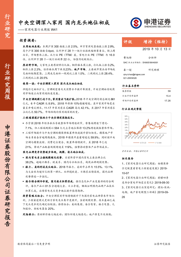 【申港证券】【20191013】家用电器行业周报W41:中央空调深入家用 国内龙头地位初成-19页