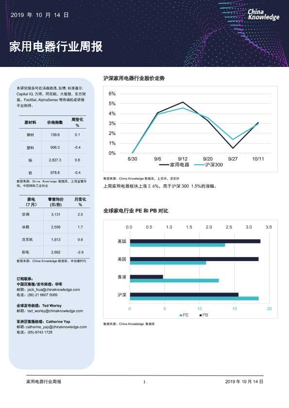 【China Knowledge】【20191014】家用电器行业周报-13页