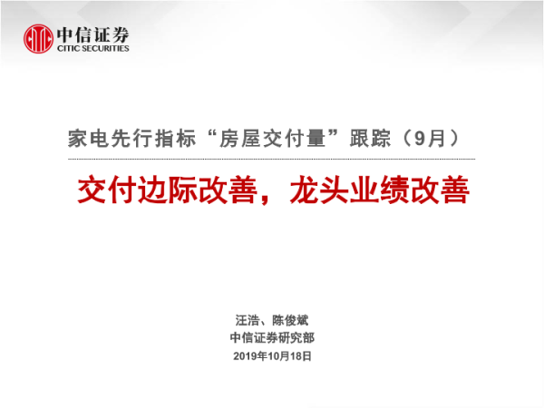 【中信证券】【20191018】家电先行指标“房屋交付量”跟踪(9月):交付边际改善,龙头业绩改善-10页