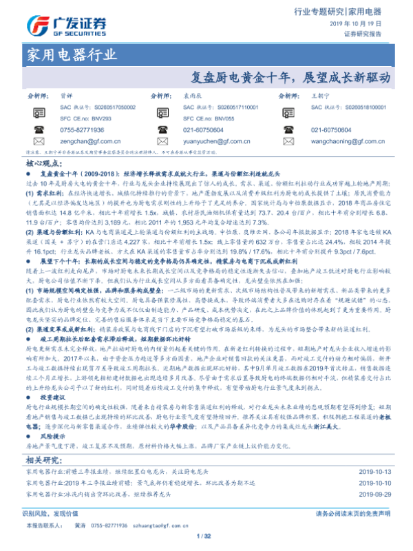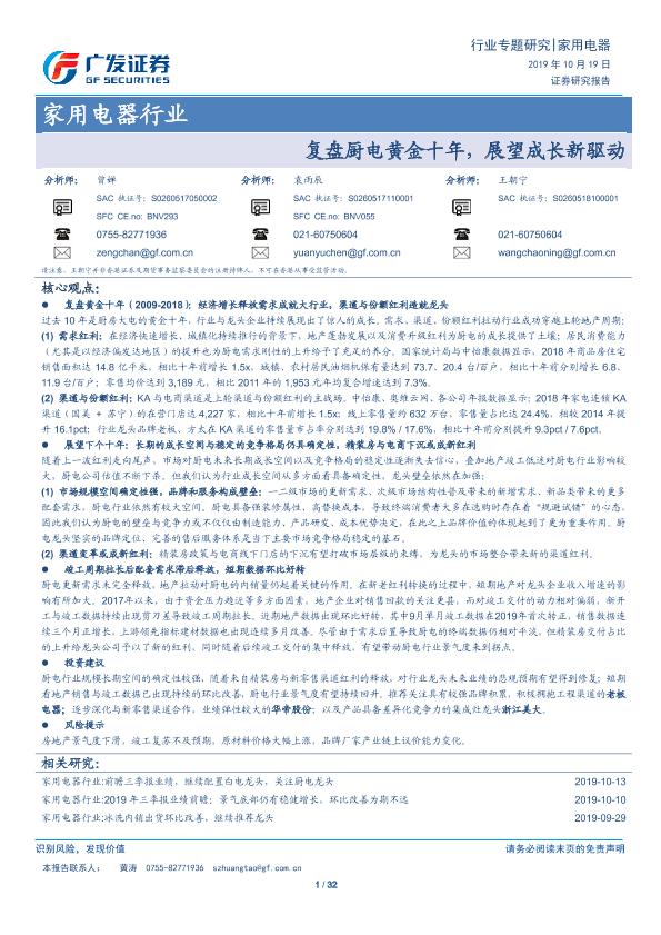 【广发证券】【20191019】复盘厨电黄金十年,展望成长新驱动-32页